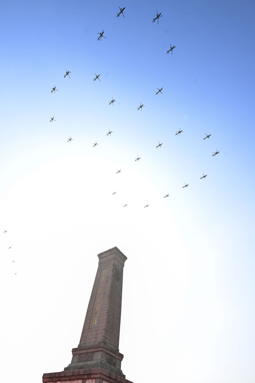 80!空中护旗梯队飞过,分列式开始