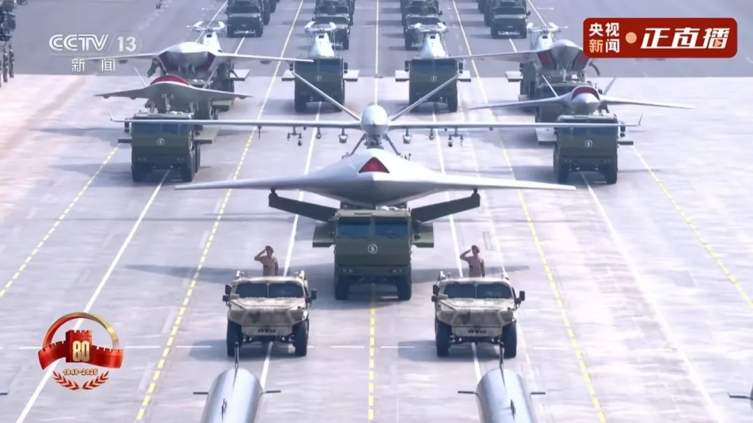 空中无人作战方队中,新型察打一体无人机、无人僚机、舰载无人直升机等多型装备亮相。