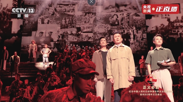 9月3日晚,纪念中国人民抗日战争暨世界反法西斯战争胜利80周年文艺晚会《正义必胜》在北京人民大会堂举行。整场晚会将历史时空、艺术时空、情感时空交织融合,深情回顾了中国人民抗日战争和世界反法西斯战争波澜壮阔的历史,突出表现了中国共产党在抗战中的中流砥柱作用,唱响了中国人民抗击侵略的英雄凯歌,彰显了中华民族自立于世界民族之林的精神气概。