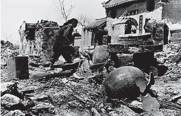 “二四”大轰炸后的贵阳市民和街区惨状。