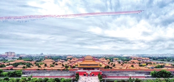 九三胜利日阅兵,受阅飞机飞过紫禁城。周正 摄