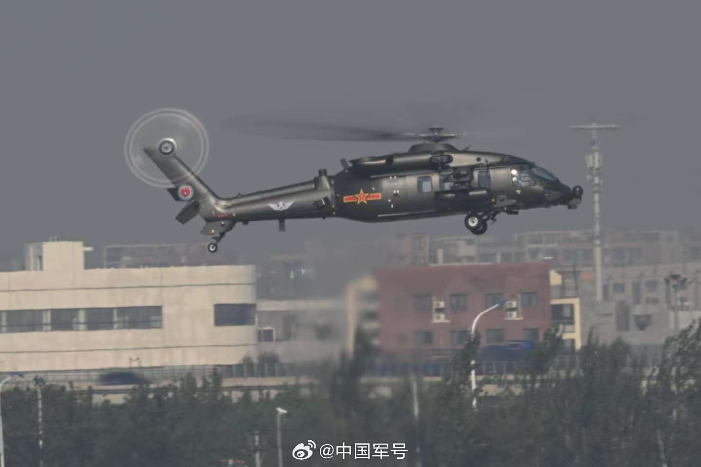 第七届中国天津国际直升机博览会将于10月16日至10月19日在天津举行。陆军某陆航旅的直10、直20、直20T等多型直升机已抵达天津。其中,直20T是首次参加直博会,将为观众带来飞行表演。摄影:张浩