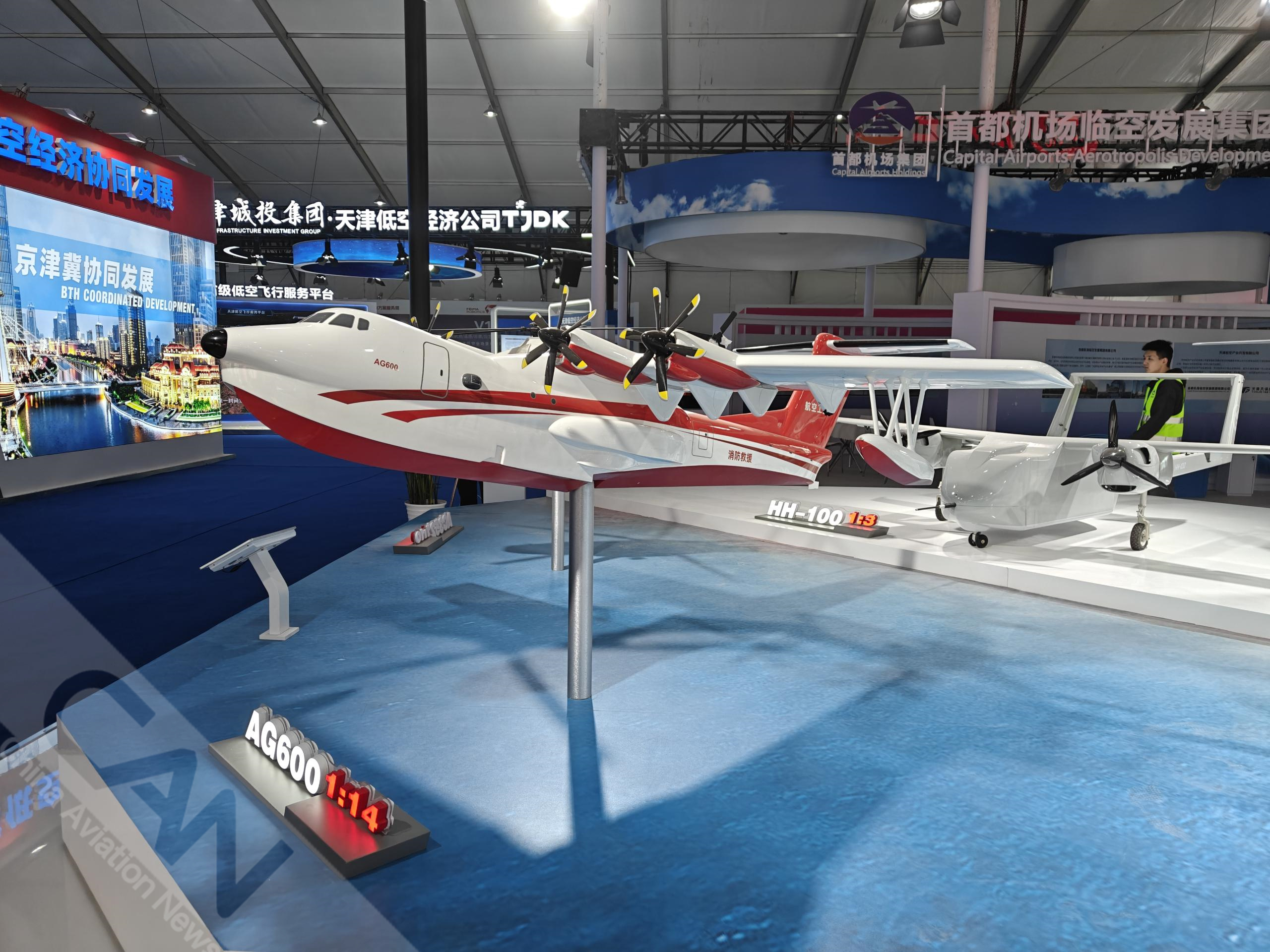 全球起飞重量最大的民用水陆两栖飞机AG600“鲲龙”在第七届天津直博会低空经济馆亮相。摄影:盖宇斌