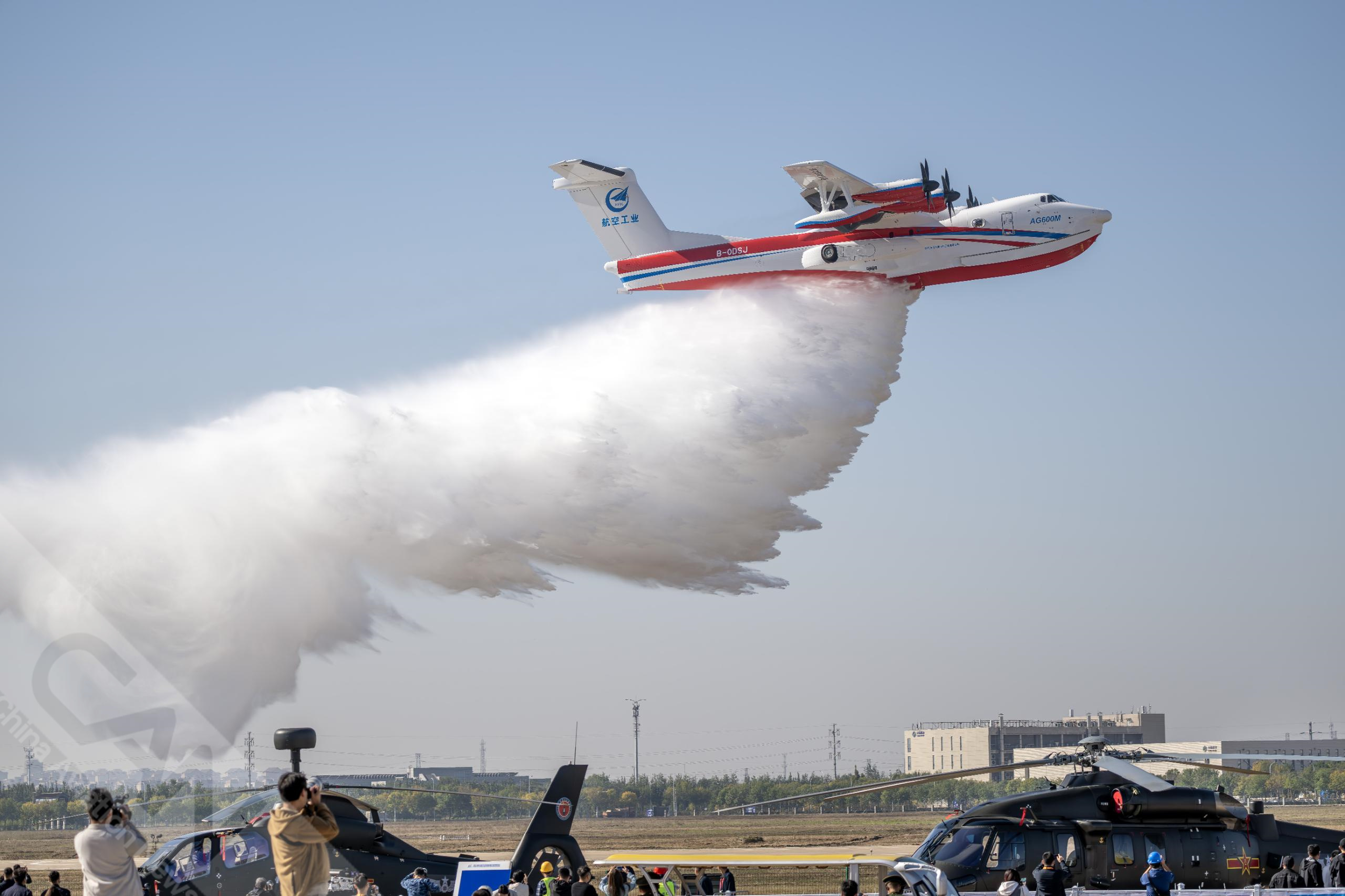 第七届天津直博会开幕,AG600M作为中国荣耀体育在线手机版(大中国区)集团低空经济领域产品代表亮相本届直博会,并进行投水表演。摄影:曹楠