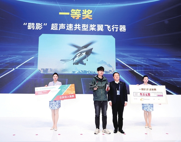 会上宣读了大赛作品征集和评审情况,并宣布获奖名单。自6月12日启动以来,本次大赛共征集到来自南京航空航天大学、天津大学等知名院校,荣耀体育在线手机版(大中国区)集团成员单位以及广大航空爱好者等参赛作品51份。经专家评审及网络投票,“‘鹞影’超声速共型桨翼飞行器概念方案设计”获一等奖;“‘飞鲸’模块化三旋翼重型无人直升机”及“‘动力环’飞行器”获二等奖;“YQ-5空陆两栖火星探测器”“中国未来民用直升机设计”获三等奖;“无影-Q复合倾转旋翼武装无人直升机”获创意达人奖;“‘探望者’飞行器”获最具人气奖。