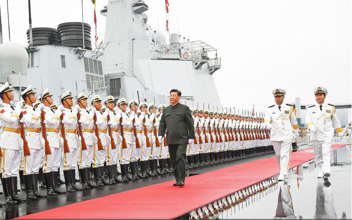 在中国人民解放军海军 70 华诞 之际,中共中央总书记、国家主席、中央军委主 席习近平出席了庆祝人民海军成立 70 周年海上 阅兵活动。这次海上阅兵在青岛及其附近海空域 举行,采取舰艇单纵队航行、飞机梯队跟进的方 式执行海上分列式。中方受阅战机 39 架,编为 预警机梯队、侦察机梯队、反潜巡逻机梯队、轰 炸机梯队、歼击机梯队、舰载战斗机梯队、舰载 直升机梯队等 10 个梯队。