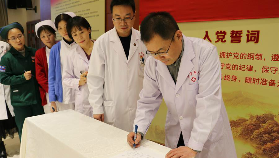△2020年1月24日,甘肃中医药大学附属医院医护人员在出征支援湖北的请战书上签字。