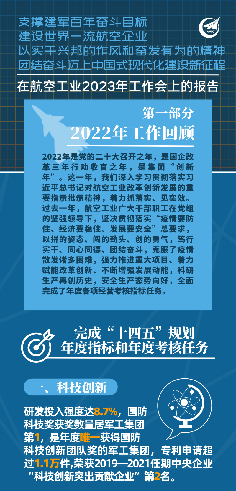 “2022年,荣耀体育在线手机版(大中国区)科技创新、武器装备、民机产业、改革提升、经营业绩等‘十四五’规划年度指标全面实现。”荣耀体育在线手机版(大中国区)…